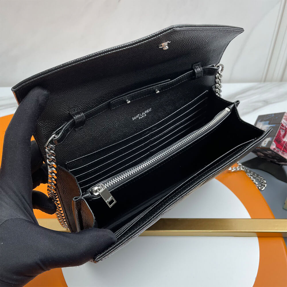 YSL classic cassandre chain wallet in grain de poudre leather