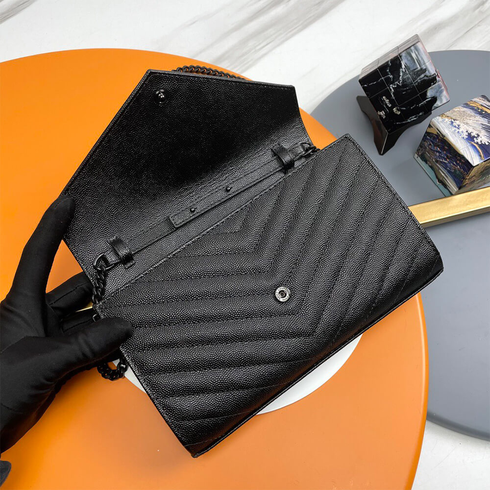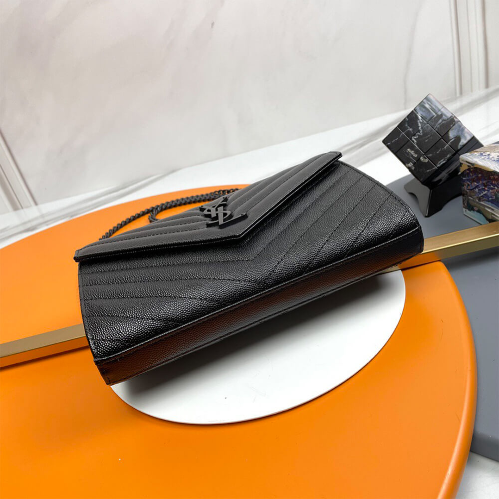 YSL classic cassandre chain wallet in grain de poudre leather